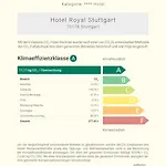 A 4 csillagos Hotel Royal Stuttgart területétől alig egy 10 perces sétára található a Stuttgarti Városháza. A Stuttgart városi hotel privát parkolóval várja a vendégeket, amely a helyszínen áll rendelkezésre.